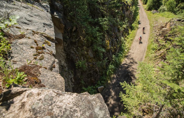 The Columbia and Western Rail Trail is 162 Km long from Castlegar, British Columbia to Midway, B.C. and travels the abandon Canadian Pacific Boundary Subdivision with the last train going thru in 1991. In 2000 the C.P.R. donated the line to the Province of British Columbia for a Recreational trail to form the British Columbia’s Trans-Canada Trail network. By starting on the Paulson highway- you can choose to ride downhill along the abandoned railway tracks to Christina Lake or downhill to Castlegar.