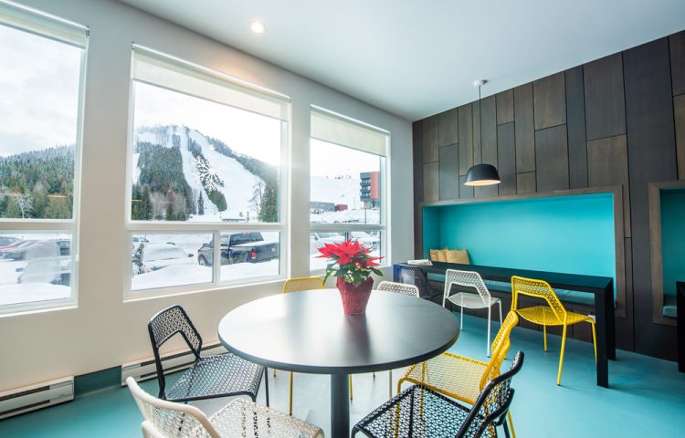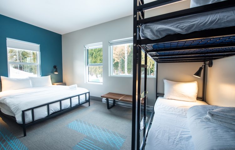 Located a mere two-minute walk from the chairlift, Nowhere Special dishes out a number of floor plans catering to different needs for privacy and price, including two wheelchair-accessible units. A typical room here at Nowhere Special sleeps four and shares an en suite bathroom for each eight.
